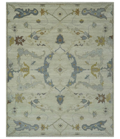 This Light Blue and Ivory hand knotted Traditional Oushak Wool Area Rug offers a unique blend of vibrant colors and soft wool for a timeless look. ...