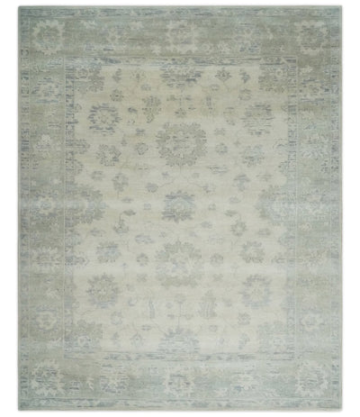 The Oriental Oushak design with a classic color combination of Moss and Ivory gives it an antique look. The rug is made with fine Wool. It is a per...