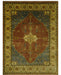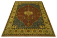 8.8x11.9 Rust, Gold and Blue Heriz Traditional Vintage Style Antique Look Hand Knotted Wool Area Rug