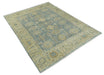 This hand-knotted Antique look rug features a timeless teal and beige color scheme. Crafted with high-quality wool, it adds warmth and style to your space. Measuring 8x10, it is a traditional Oushak inspired design that brings Traditional style to your home.
