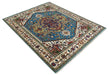 8x10 Olive, Blue and Ivory Heriz Serapi Hand knotted Traditional wool Area Rug