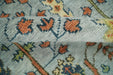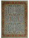 This luxurious rug showcases a rich tapestry of earthy hues, with a dominant soothing blue-gray canvas. Intricately woven patterns of delicate florals and vines are elegantly bordered by a warm rust trim, adorned with symmetrical, botanical motifs in muted greens and creams. The texture is plush yet refined, delivering both comfort and sophistication. Each element harmonizes, conjuring a timeless elegance that elevates any space with its classic, yet contemporary appeal.