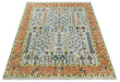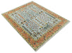 Hand Knotted Tree of Life Rust and Blue Traditional Turkish Design Wool Rug