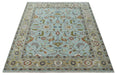 Light Blue and Camel 8x10 Hand Knotted Traditional Floral Oushak Rug