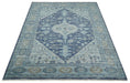 Woolen 8x10 Navy Blue and Beige Traditional Hand Knotted Wool Area Rug